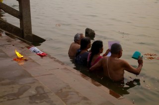 After over half an hour, we finally worked our way to the Kashi Vishwanath Temple (or the Golden Temple). This temple, dedicated to Lord Shiva, is also necessary for Hindus to visit to achieve moshka or liberation. A widespread belief supposes Shiva himself blows the mantra of salvation into the ears of the people who die of natural causes at the temple. We then ended our evening with a walk along the ghats, since it really is the main attraction of the city. Once again the little snippets of conversation and ensuing laughs were the real treat of the evening. That and the contrasting peacefulness of the riverside from the earlier chaos.