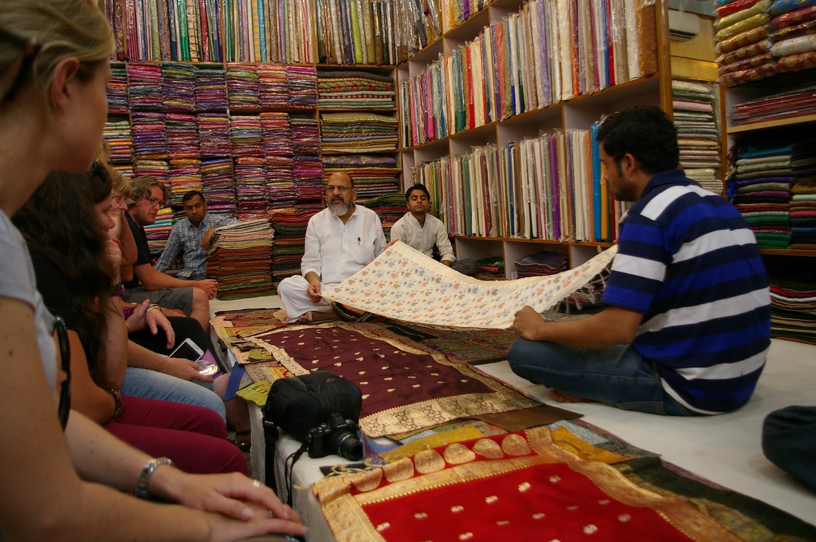 A quick race took us to our next destination of a silk factory. We saw the life of the factory in its hand woven silks and its machine-made silk blends. The sad reality for these weavers is a mere 100-250 Rupees per day for their tedious work. The government has had to step in several times to preserve this art form from extinction. The best/worst part of the tour was the hour long sales pitch about the high quality of this silk compared to all other silk in India. It was a strange marketing pitch, since it used guilt in such a weird way. I tried to calculate out exactly what percentage of the sales the workers took home, considering how many artists were needed for the piece, how long it took for the artist to complete it, and the price of the artwork. However, I was excited after the pitch when I got to try on my very first sari. I crossed that off my India bucket list!