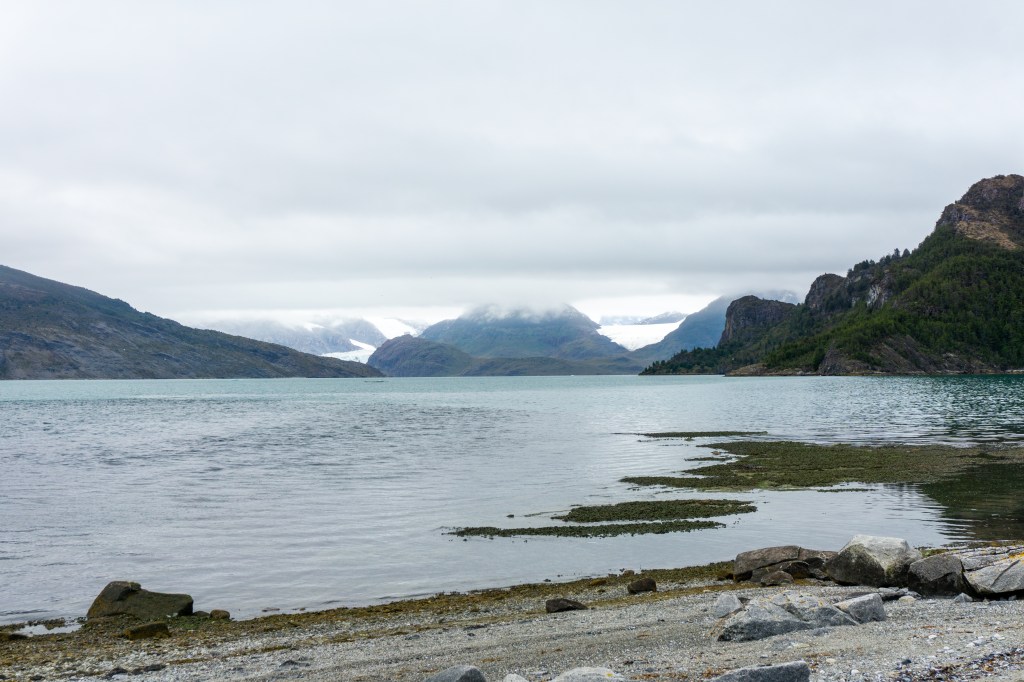 Our first time on a cruise, Spencer and I didn’t know what to expect. A boat with three formal meals a day and unlimited snacks and pastries in between, we were ready for a little luxury (and a lot of food) after our four-day W trek. Our cruise first took us to Ainsworth Bay, an isolated area where you can see the rapidly retreating Marinelli glacier. In just over 100 years, this glacier has receded about 8.7 miles or 14 kilometers.