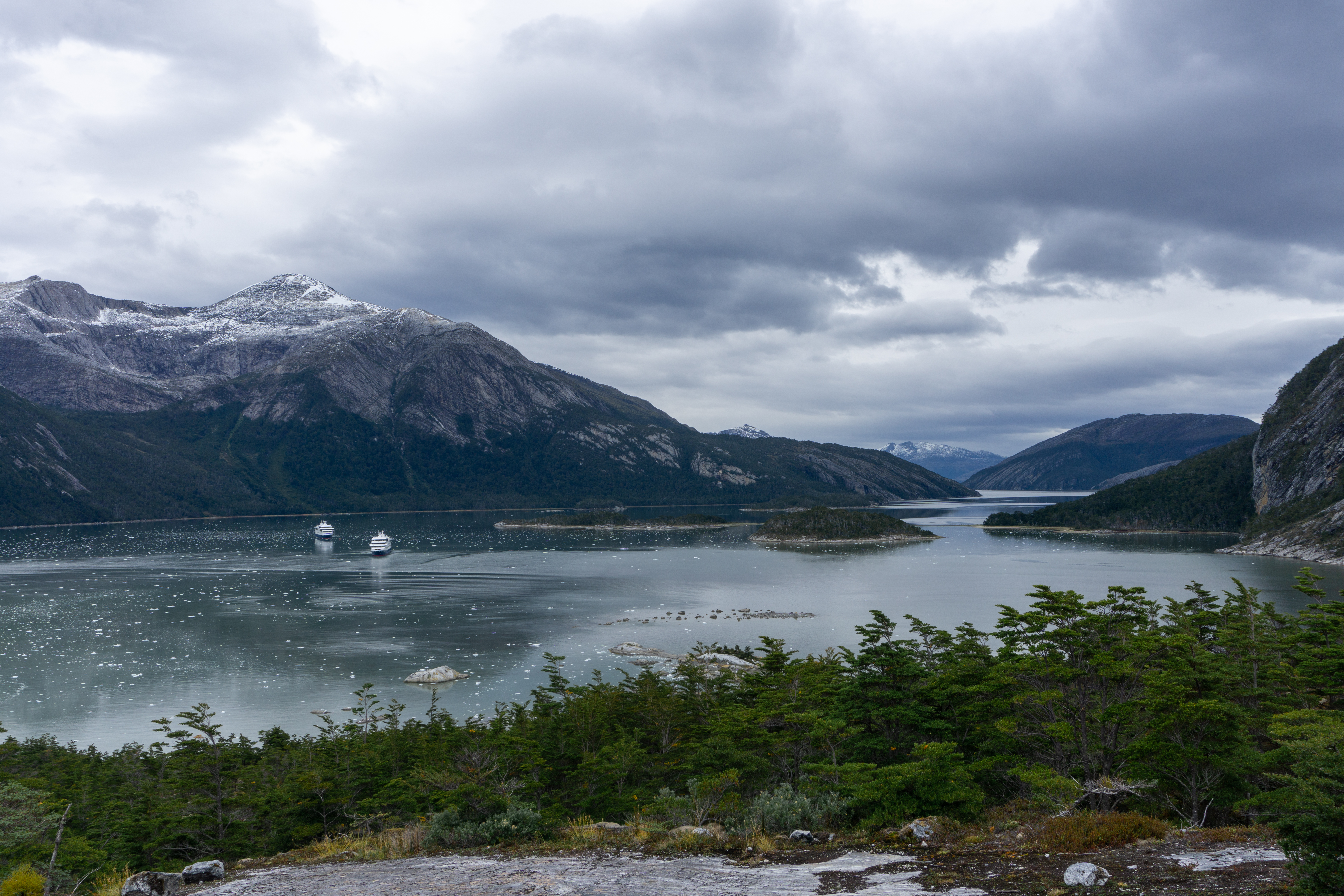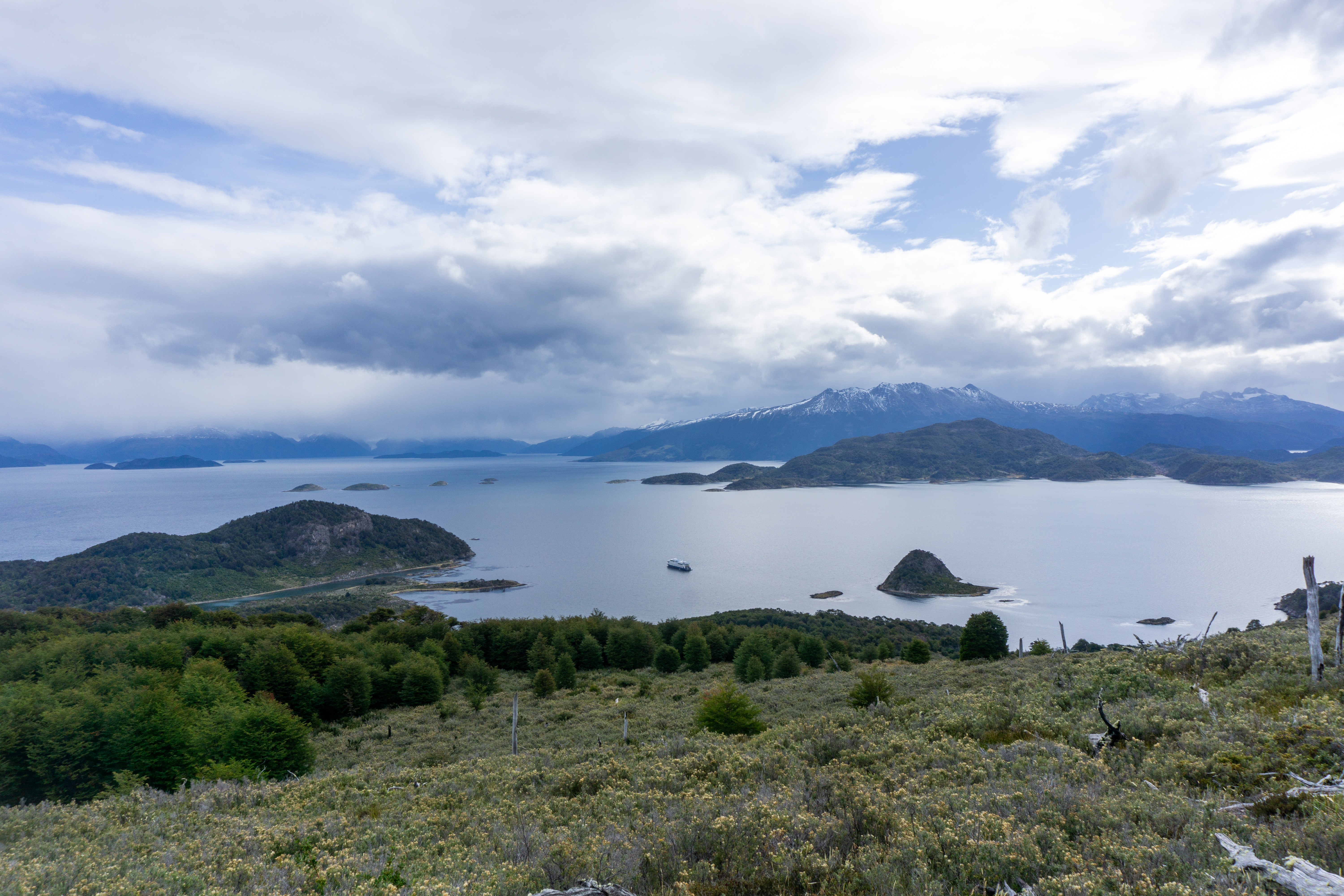 Our final destination before heading to Ushuaia was Wulaia Bay, a special place as it was the site of one of the largest Yamaha aboriginal settlements and where Charles Darwin landed in 1833. It’s also home to a beautiful Magellan Forest of southern beech trees, winters bark, and hundreds of other flora. Spence and I hiked up through this forest to see a panoramic view of the bay.