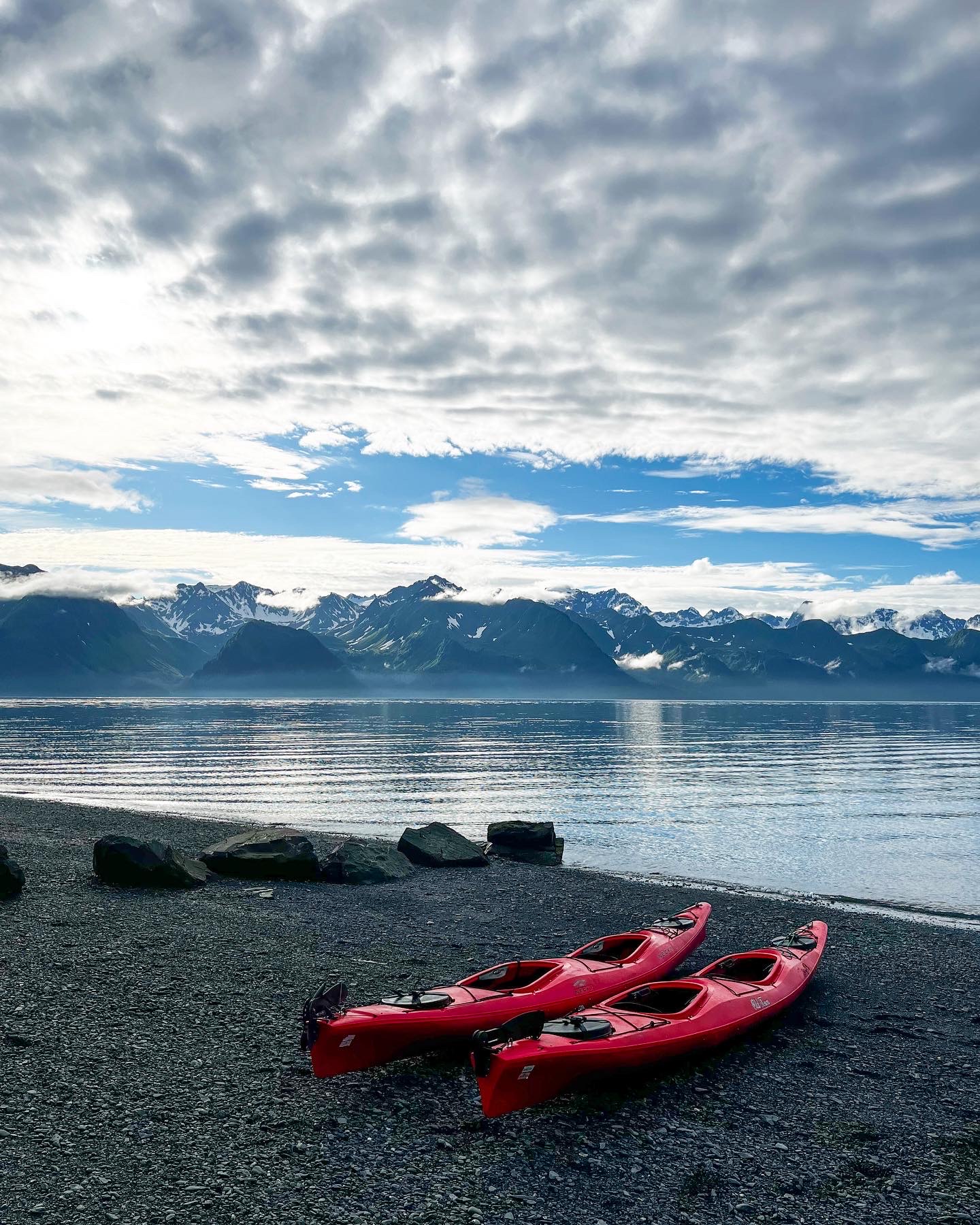 Our last day in Seward was a morning kayak tour through Resurrection Bay, leaving from Lowell Point. We were lucky to have a private guide for just the four of us. Because we had some level of fitness, we were able to go to the beach which required only a short hike to see Bridal Veil Falls, a beautiful remote waterfall a bit off the shore. A peaceful morning, this was the perfect end to our trip, as we finally had the sunny weather we had wished for to see the famous Seward range from the waters. It was a really special moment to sit there in those waters and take it all in as our final day in Alaska.